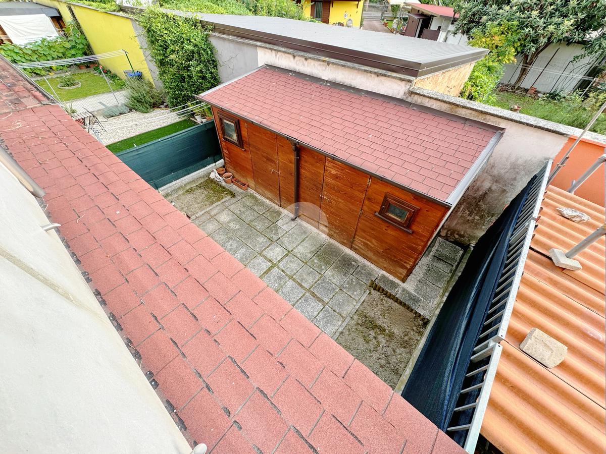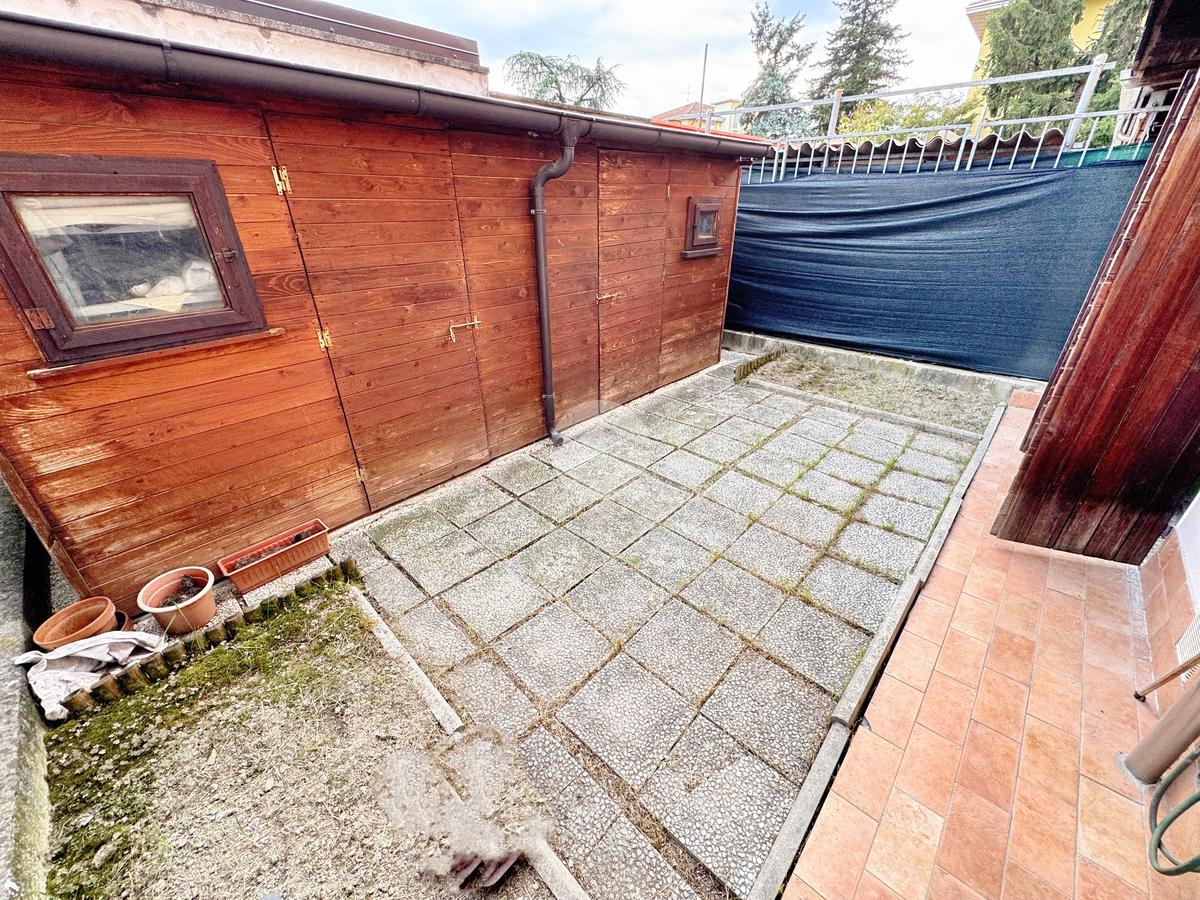 Comodo garage doppio, bagno di servizio e giardino privato, perfetto per momenti di relax all’aperto, per chi ha bambini o amici a quattro zampe.